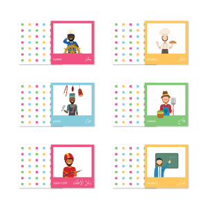 This memory game pack contains 19 pairs of Arabic professions memory cards for your family to play and learn at the same time!